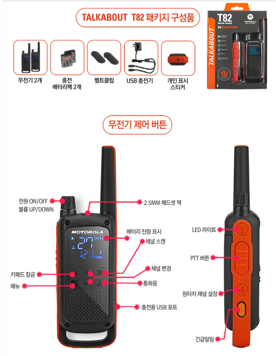그리고 구매 결정한 것이 모토로라 생활무전기 T-82입니다.