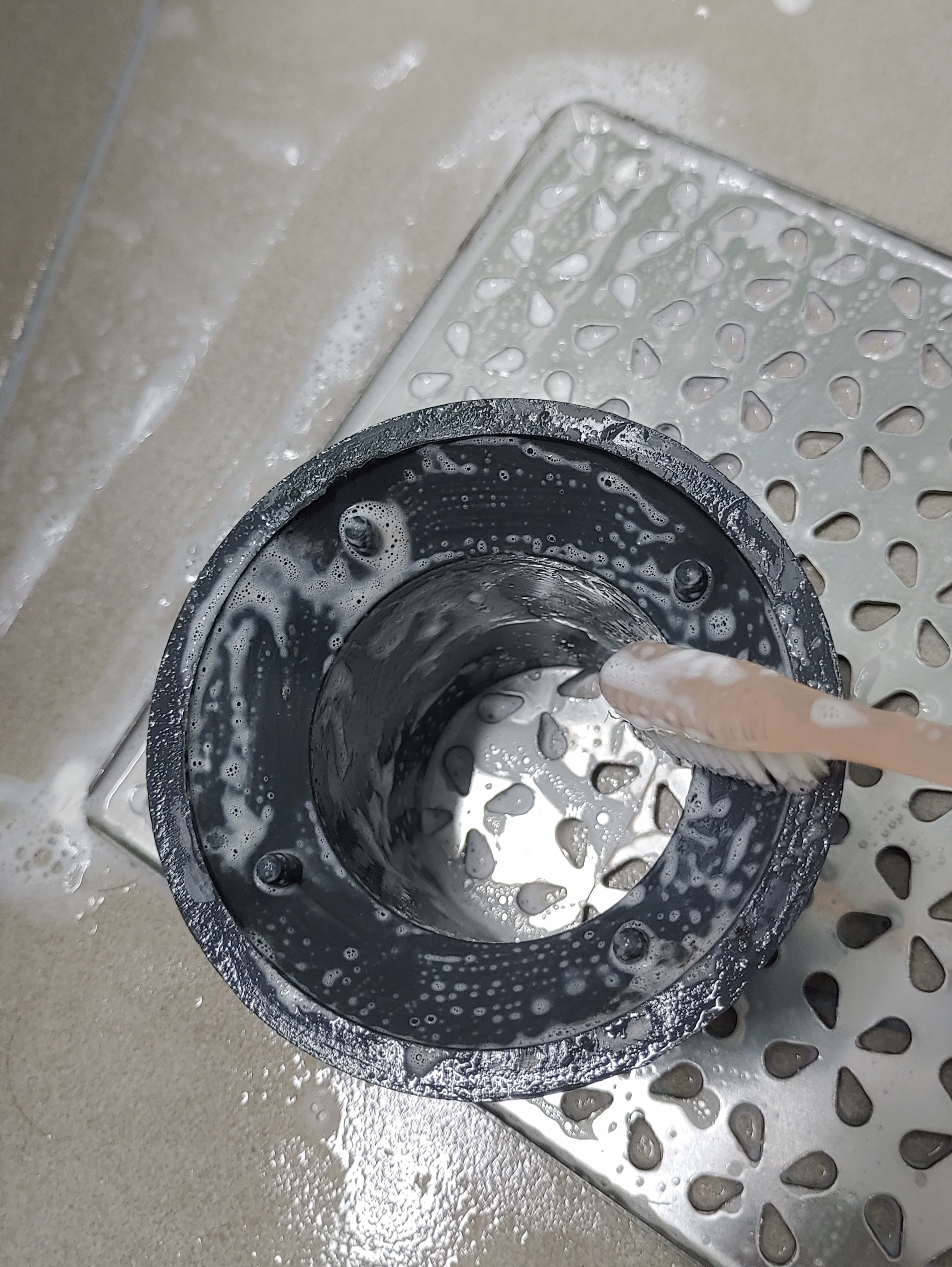 앞면뿐 아니라 뒷면, 각 부속품들, 트랩을 분리한 배수구 내부도 닦아줍니다.