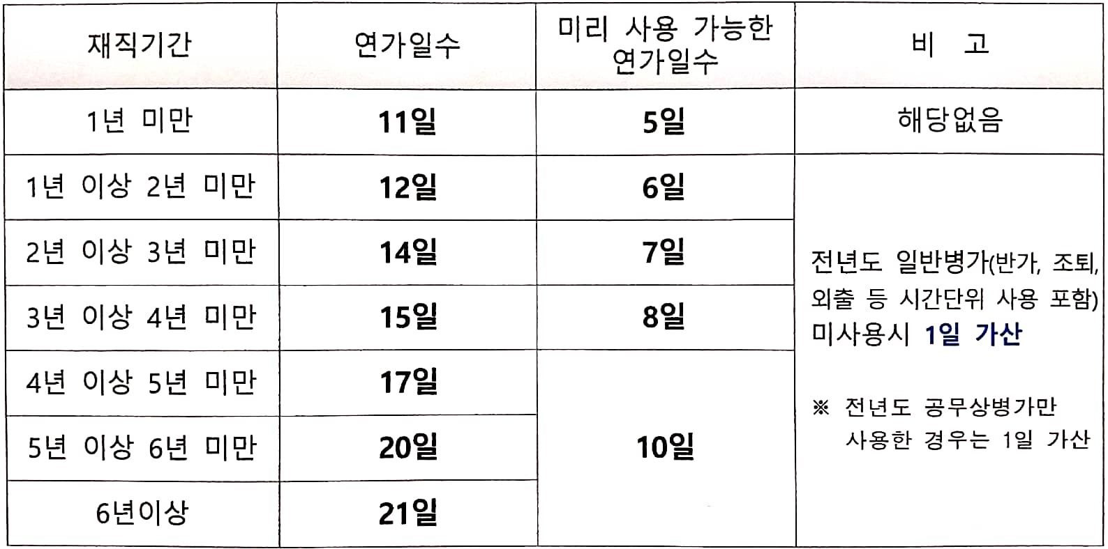 안녕하세요! 동혁군입니다. 2023년의 시작이 엊그제 같은데 벌써 1월의 마지막날입니다. 한해 계획은 순조롭게 잘 진행하고 계신가요? 오늘은 '국가공무원 복무징계 관련 예규'에 규정된 공무원 연가일수에 대해 알아볼까 합니다. 공무원은 임용 후부터 재직기간에 따라 연가일수가 정해집니다. 재직기간 1년미만 11일부터 6년이상 21일까지 월평균 0.91 ~ 1.75일이라 비교적 적지 않은 연가일수라 할 수 있는데요. 또한 전년도에 병가를 사용하지 않았다면 1일 가산되어 최대 22일까지 사용 가능합니다. 여기서 병가는 일반병가에 한하며 병과 관련된 반가, 조퇴, 외출 등 시간단위 사용도 포함됩니다. 공무원의 연가제도의 장점 중 하나라면 차년도 연가일수에서 필요한 일수만큼 미리 사용 가능하다는 점입니다. 재직기간..